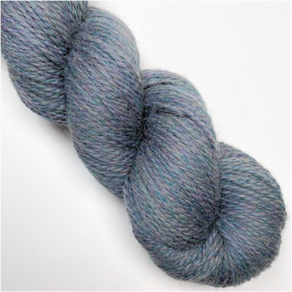 Faded denim blue heather. 100% wool. Sport weight. 100 grams, 274 yards (250 meters).
