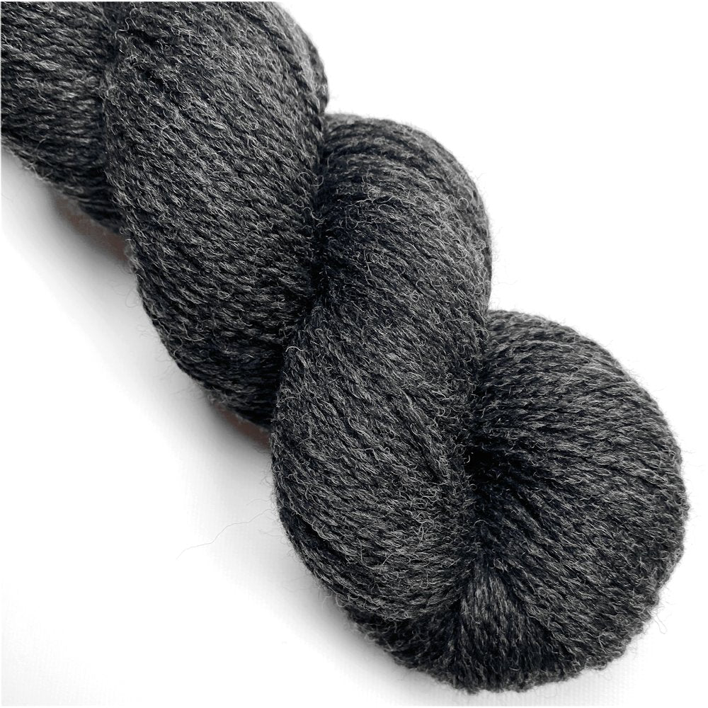 Dark grey heather. 100% wool. Sport weight. 100 grams, 274 yards (250 meters).