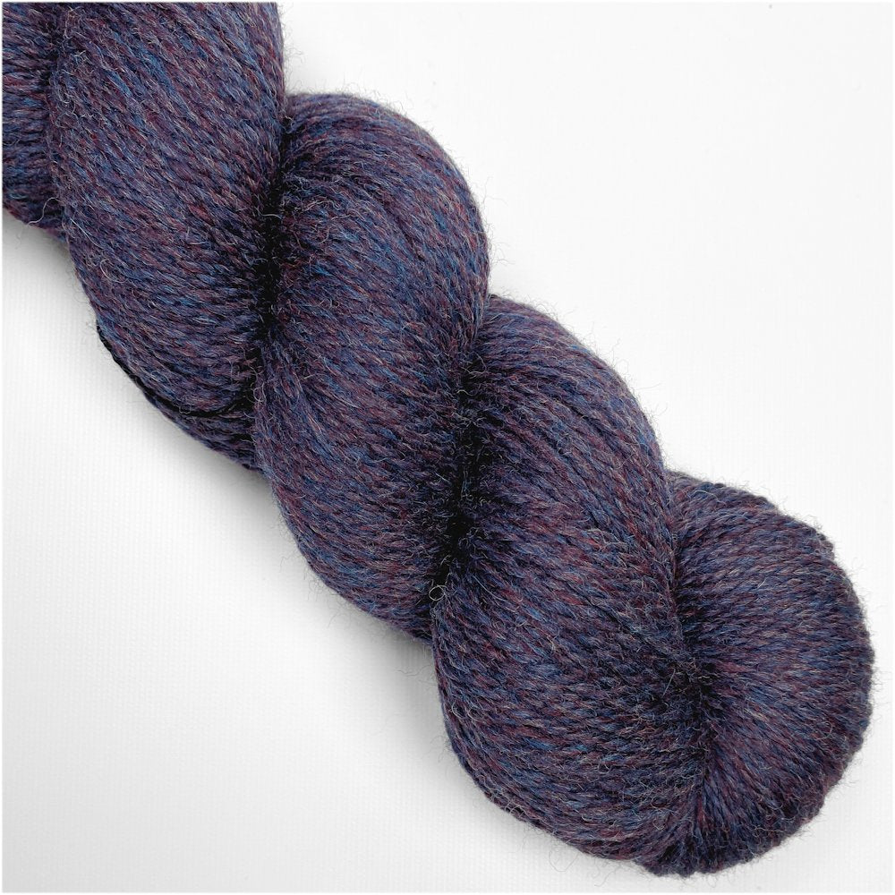 Deep blue-purple heather. 100% wool. Sport weight. 100 grams, 274 yards (250 meters).
